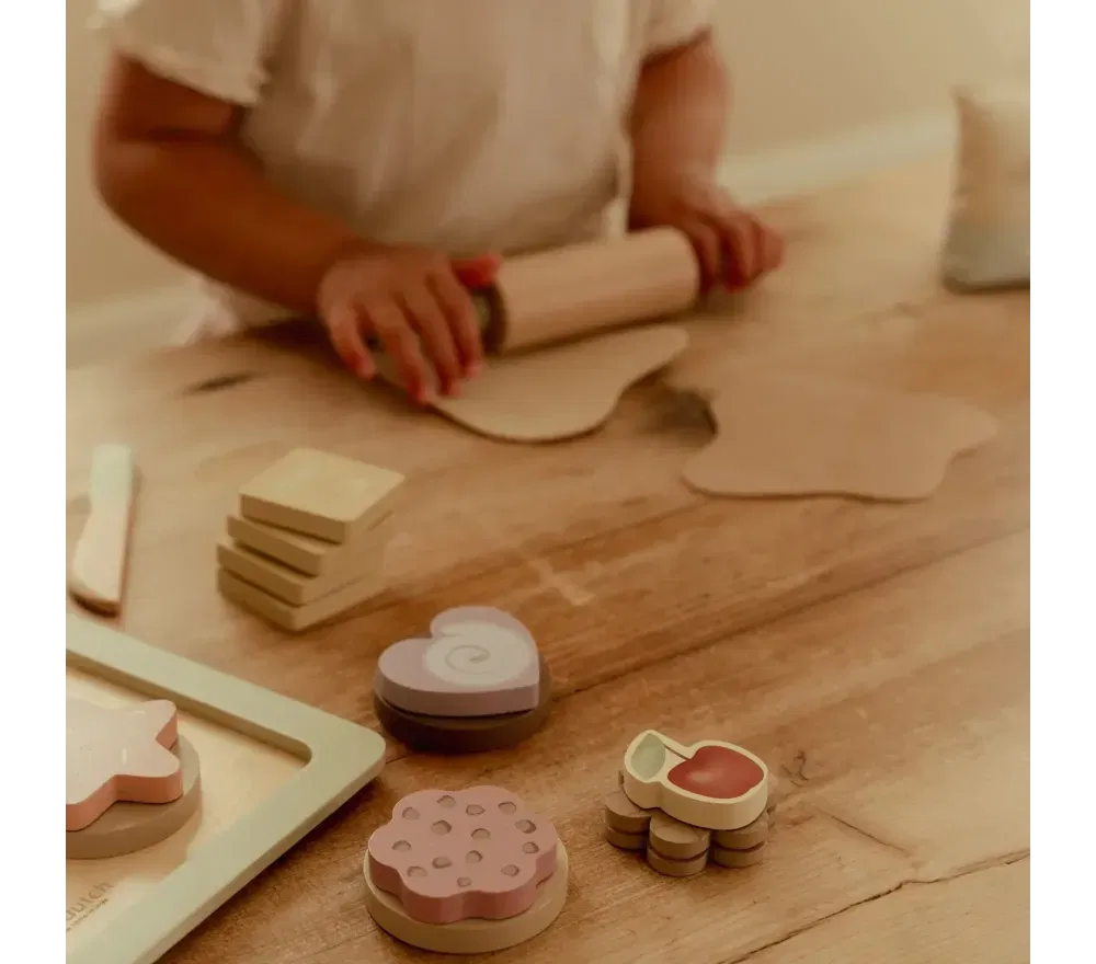 Stendi l’impasto e decora i biscotti e organizza una festa con il set da pasticciere! Questo set di gioco aiuta a sviluppare capacità di pensiero creativo e migliora l’immaginazione pensiero. Sviluppa ulteriormente le abilità linguistiche e comunicative con il gioco sociale! Il gioco simbolico comincia verso i due anni e proseguirà a lungo nelle sviluppo del bambino. Un gioco che incoraggia l’immaginazione e il gioco sociale. Un’attività perfetta per stimolare il linguaggio e aumentare i vocaboli del bambino.