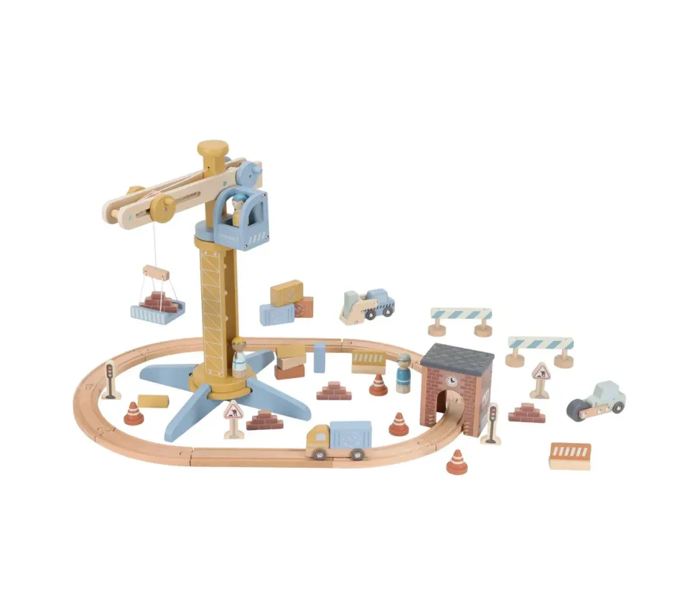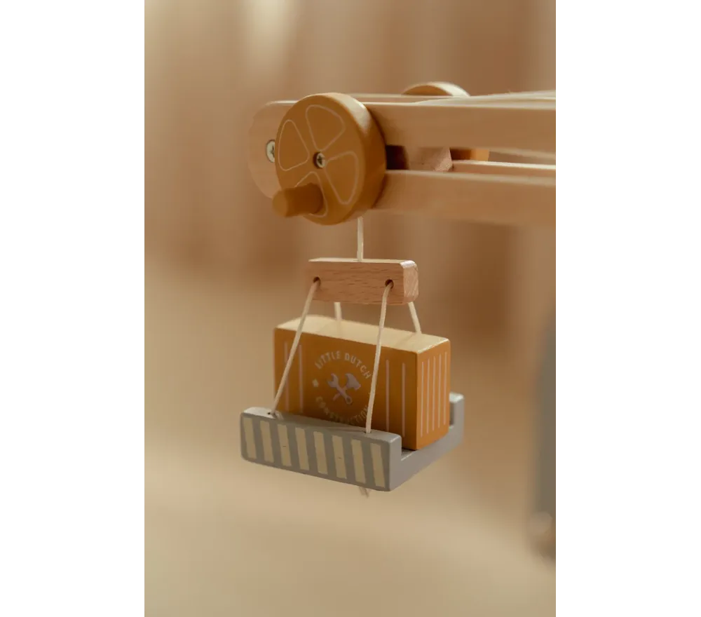 Set gru con binari estensione railway Little Dutch. Un grande cantiere con un’imponente gru in legno FSC e tanti accessori per ore e ore di lavori edili! Il set comprende anche dei binari, per poter collegare il cantiere alla ferrovia in legno Little Dutch.